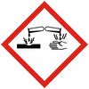 Gefahr | H290 Kann gegenüber Metallen korrosiv sein | H314 Verursacht schwere Verätzungen der Haut und schwere Augenschäden.[Anm. 1] | H412 Schädlich für Wasserorganismen, mit langfristiger Wirkung | P260 Staub / Rauch / Gas / Nebel / Dampf / Aerosol nicht einatmen | P280 Schutzhandschuhe / Schutzkleidung / Augenschutz / Gesichtsschutz tragen | P301+P330+P331 Bei Verschlucken: Mund ausspülen. Kein Erbrechen herbeiführen. (Mit Inkrafttreten der 4. ATP am 1. Dezember 2014 aufgehoben, mit Inkrafttreten der 8. ATP am 1. Februar 2018 wieder aufgenommen) | P303+P361+P353 Bei Berührung mit der Haut [oder dem Haar]: Alle kontaminierten Kleidungsstücke sofort ausziehen. Haut mit Wasser abwaschen [oder duschen]. (Bis zum Inkrafttreten der 4. ATP am 1. Dezember 2014: Bei Kontakt mit der Haut [oder dem Haar]: Alle beschmutzten, getränkten Kleidungsstücke sofort ausziehen. Haut mit Wasser abwaschen/duschen. Mit Inkrafttreten der 4. ATP am 1. Dezember 2014 aufgehoben, mit Inkrafttreten der 8. ATP am 1. Februar 2018 wieder aufgenommen) | P305+P351+P338 Bei Kontakt mit den Augen: Einige Minuten lang behutsam mit Wasser spülen. Eventuell vorhandene Kontaktlinsen nach Möglichkeit entfernen. Weiter spülen. (Bis zum Inkrafttreten der 8. ATP am 1. Februar 2018: Bei Kontakt mit den Augen: Einige Minuten lang behutsam mit Wasser spülen. Vorhandene Kontaktlinsen nach Möglichkeit entfernen. Weiter spülen.) | P310 Sofort Giftinformationszentrum, Arzt oder … anrufen