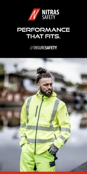 Altrettanto indispensabili sono i Guanti in nitrile NITRAS TOUGH GRIP N che, grazie alla loro superficie antiscivolo e al robusto rivestimento in nitrile, garantiscono una presa sicura e un'elevata resistenza all'usura. Per i lavori che richiedono una maggiore visibilità, il Gilet di sicurezza NITRAS, che è certificata secondo la norma EN ISO 20471 e soddisfa quindi gli attuali requisiti di sicurezza.