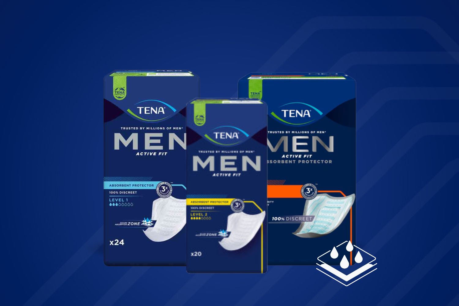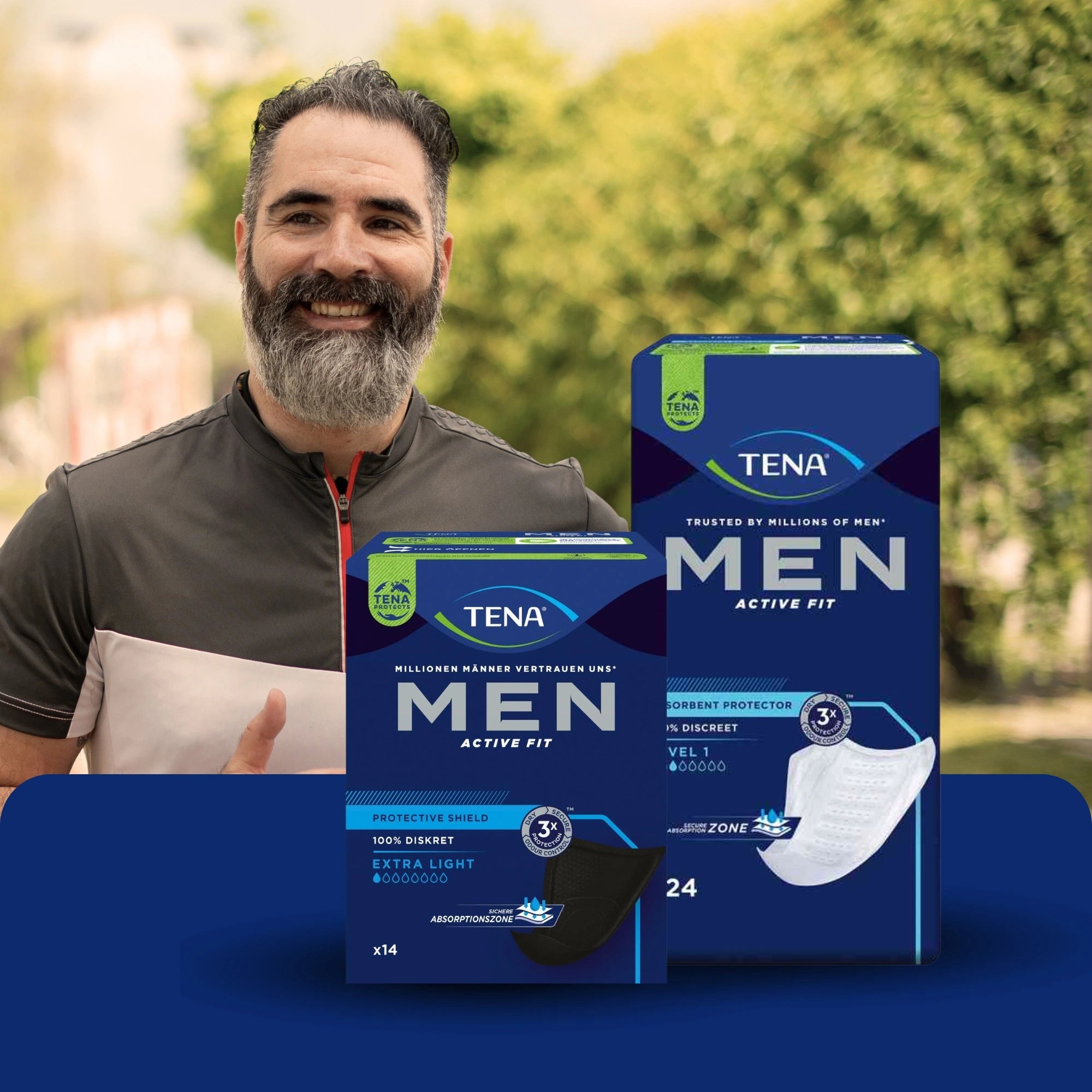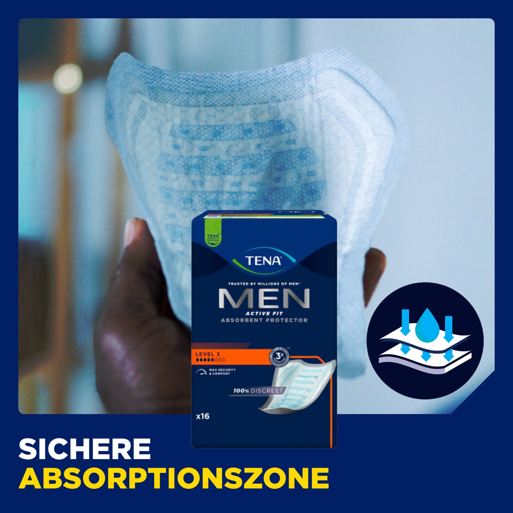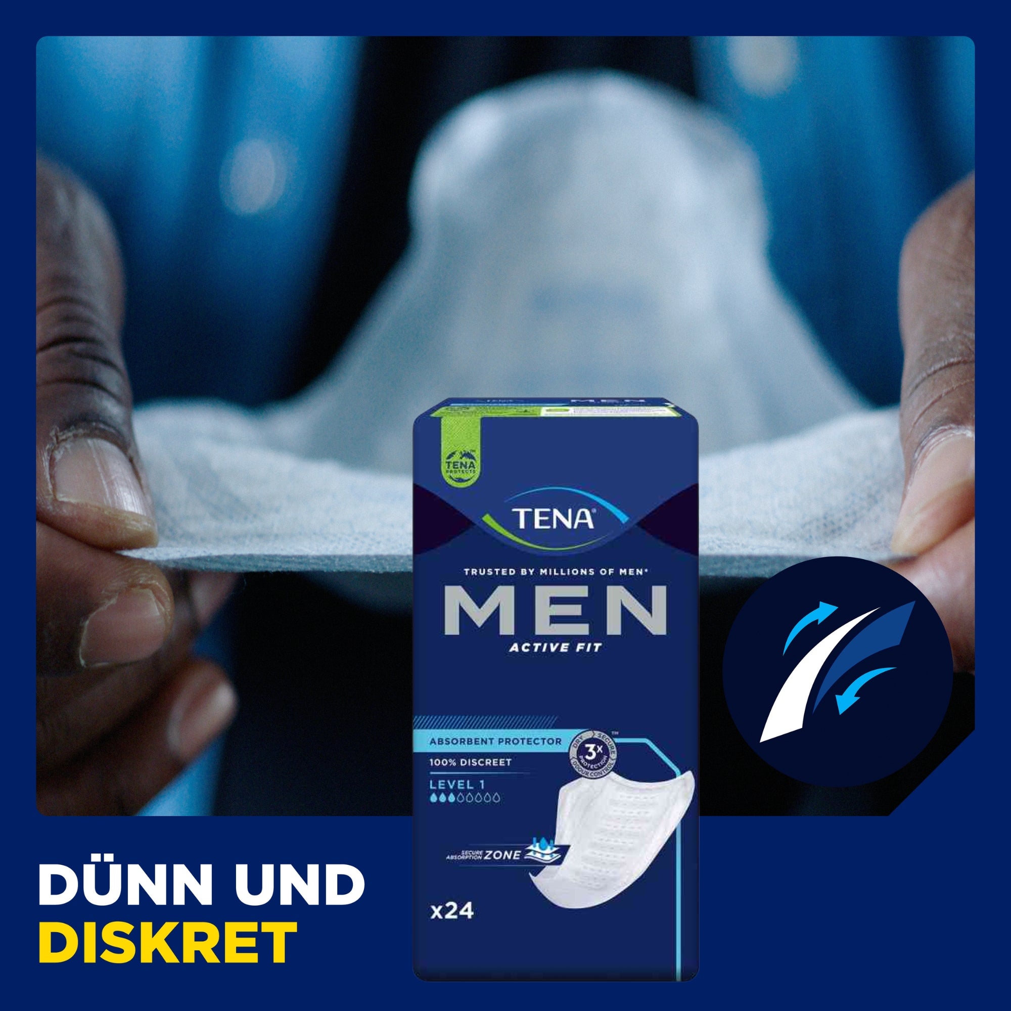 Gli assorbenti TENA Men sono stati sviluppati appositamente per l'anatomia maschile e offrono una protezione affidabile contro l'incontinenza nella vita quotidiana. Gli assorbenti sagomati anatomicamente si adattano perfettamente, si fissano in modo sicuro e garantiscono una sensazione di comfort durante l'uso. Grazie alla forma discreta, gli assorbenti TENA Men sono quasi invisibili sotto i vestiti e sono ideali per uomini attivi che apprezzano comfort, sicurezza e discrezione.