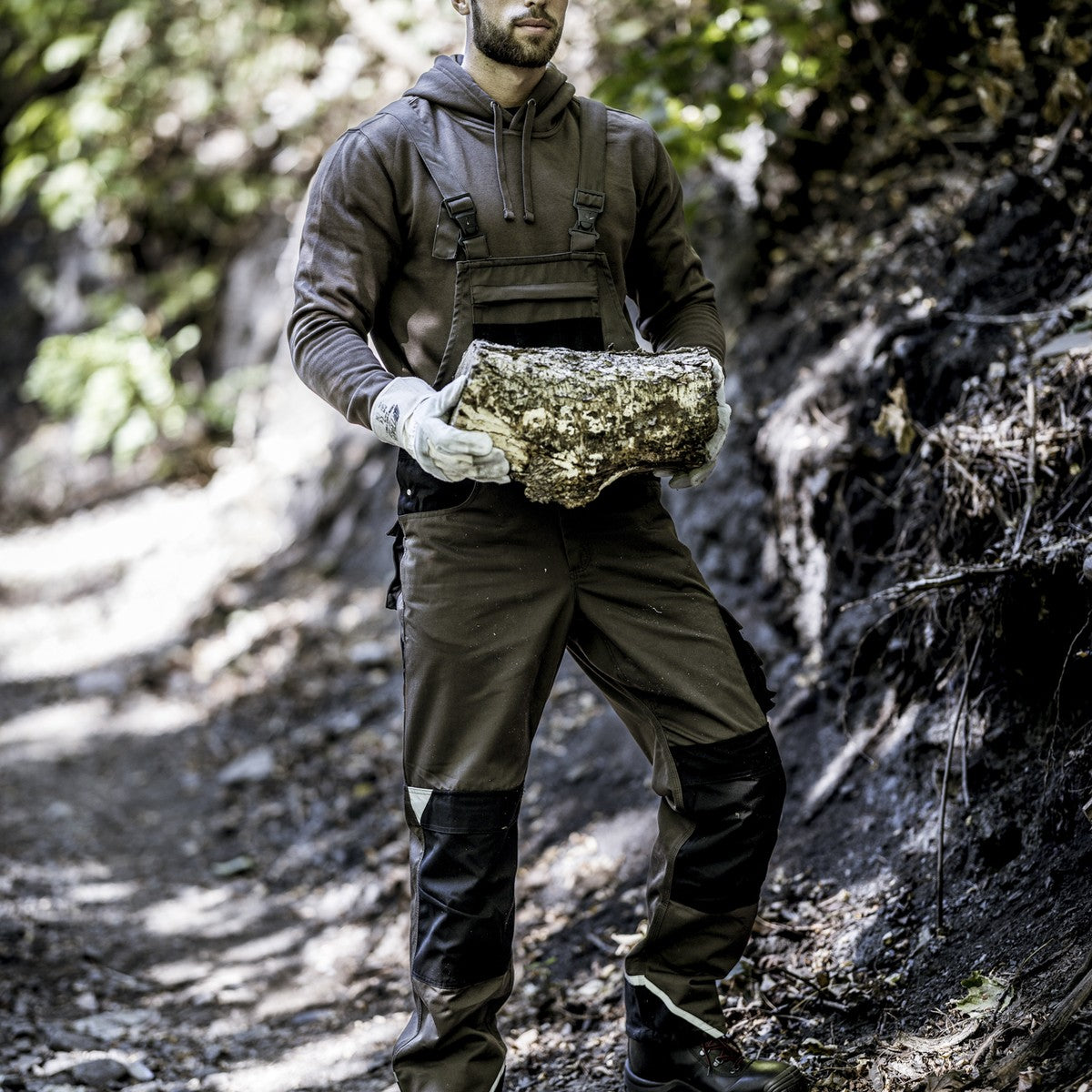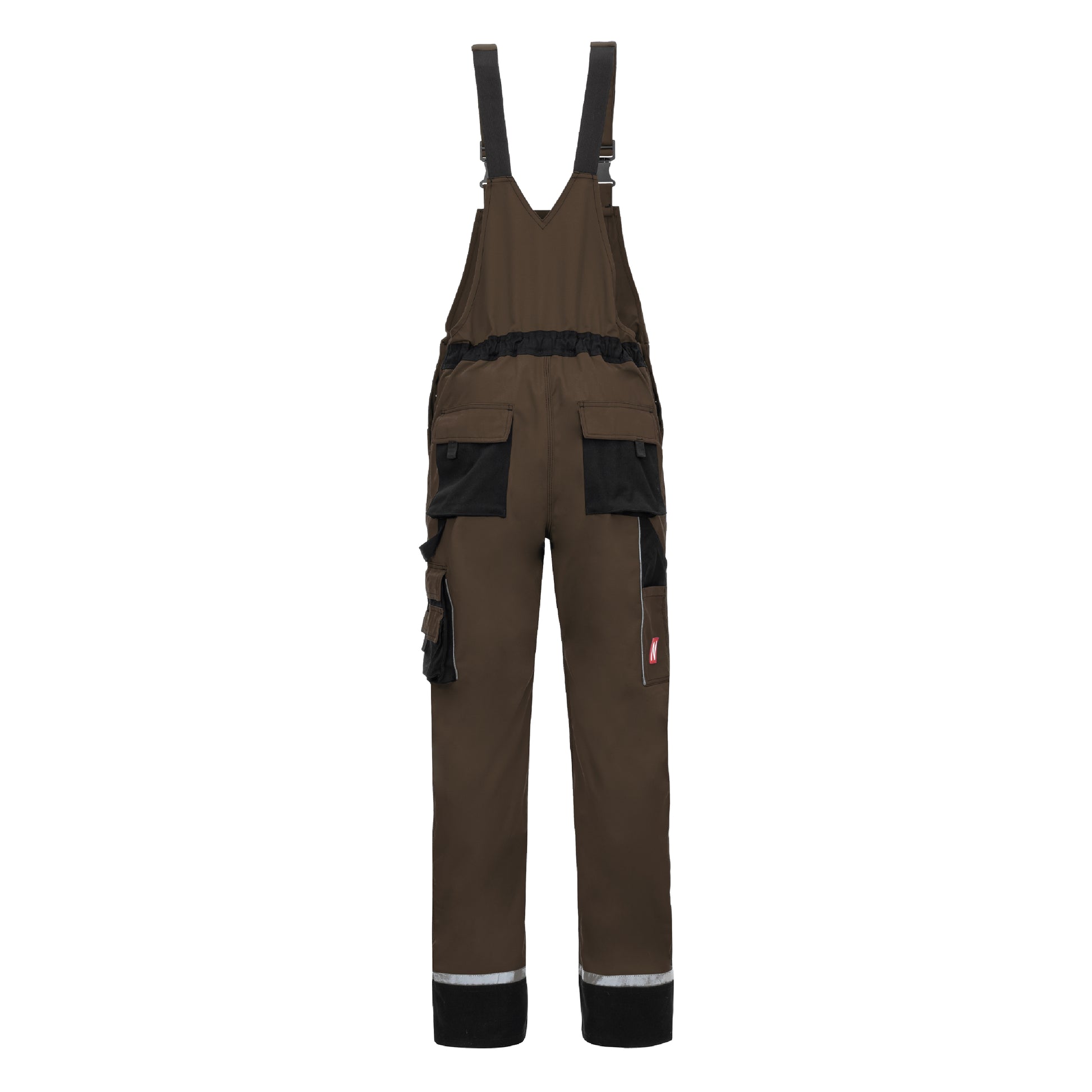 La salopette NITRAS MOTION TEX PLUS in marrone/nero (codice colore: 5010) offre un elevato livello di comfort grazie al materiale traspirante e alla cintura elastica. I rinforzi in tela sulle tasche delle gambe, delle ginocchia e posteriori, nonché sulla tasca esterna della pettorina e sui polsini delle gambe garantiscono una maggiore durata. Le robuste cuciture triple e gli elementi riflettenti migliorano la visibilità. Dotati di pratici extra come tasche sulle cosce con patta, tasca per metro, tasca interna sulla pettorina con cerniera YKK e tasche sulle ginocchia per imbottitura, questi pantaloni sono il compagno ideale per i lavori impegnativi. La lavorazione di alta qualità è completata dall'OEKO-TEX STANDARD 100® e dalla protezione per le ginocchia 76K (EN 14404) disponibile opzionalmente.