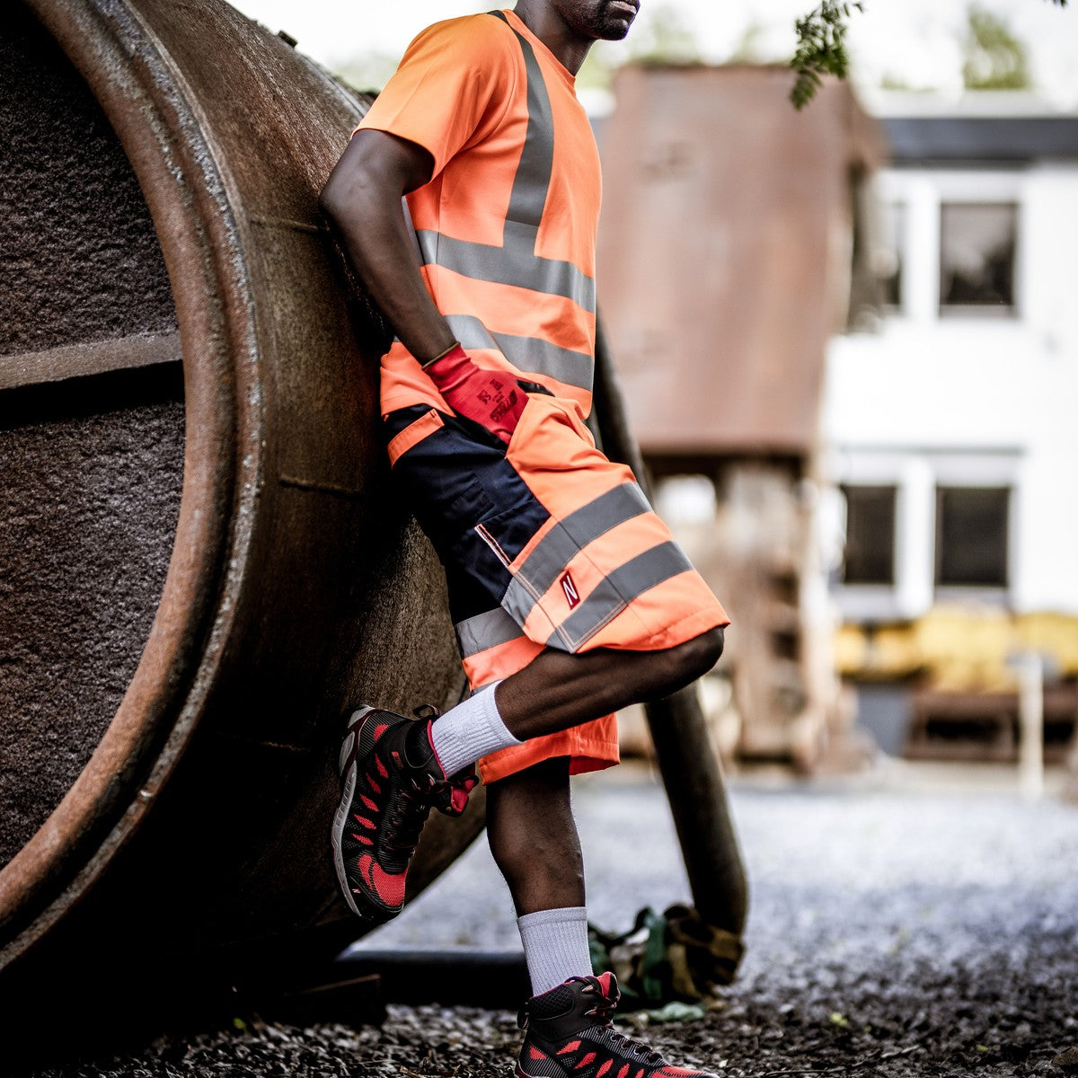I pantaloni da lavoro alta visibilità NITRAS MOTION TEX VIZ, corti, assicurano la massima visibilità e comfort quando si lavora nelle giornate calde.