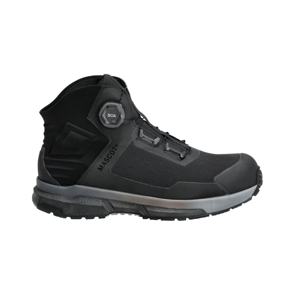 Der Sicherheitsstiefel S3S, BOA® Fit System bietet optimalen Schutz und außergewöhnlichen Tragekomfort für anspruchsvolle Arbeitsumgebungen. Das strapazierfähige Obermaterial aus Textil, kombiniert mit einer flexiblen Vorderpartie, sorgt für Bewegungsfreiheit und Langlebigkeit. Das innovative BOA® Fit System ermöglicht ein schnelles, präzises An- und Ausziehen. Die innen mit Memory-Schaumstoff gepolsterte Ferse und die stoßabsorbierende, weiche Einlegesohle bieten langanhaltenden Komfort, während die auswechselbaren Einlegesohlen maximale Hygiene gewährleisten. Für höchste Sicherheit sorgen die Komposit-Zehenschutzkappe, der MASCOLAYER® Textil-Nageldurchtrittschutz sowie die öl- und benzinbeständige Gummilaufsohle mit rutschfestem 3D-Druckmuster. Die Zwischensohle aus eTPU und EVA mit integrierter Carbonplatte garantiert eine erhöhte Energierückgabe. Der Schuh erfüllt die Anforderungen der Sicherheitsklasse S3S, ist ESD-geprüft und entspricht den aktuellen Normen EN IEC 61340-4-3:2018, EN 61340-5-1:2016 und EN ISO 20345:2022.